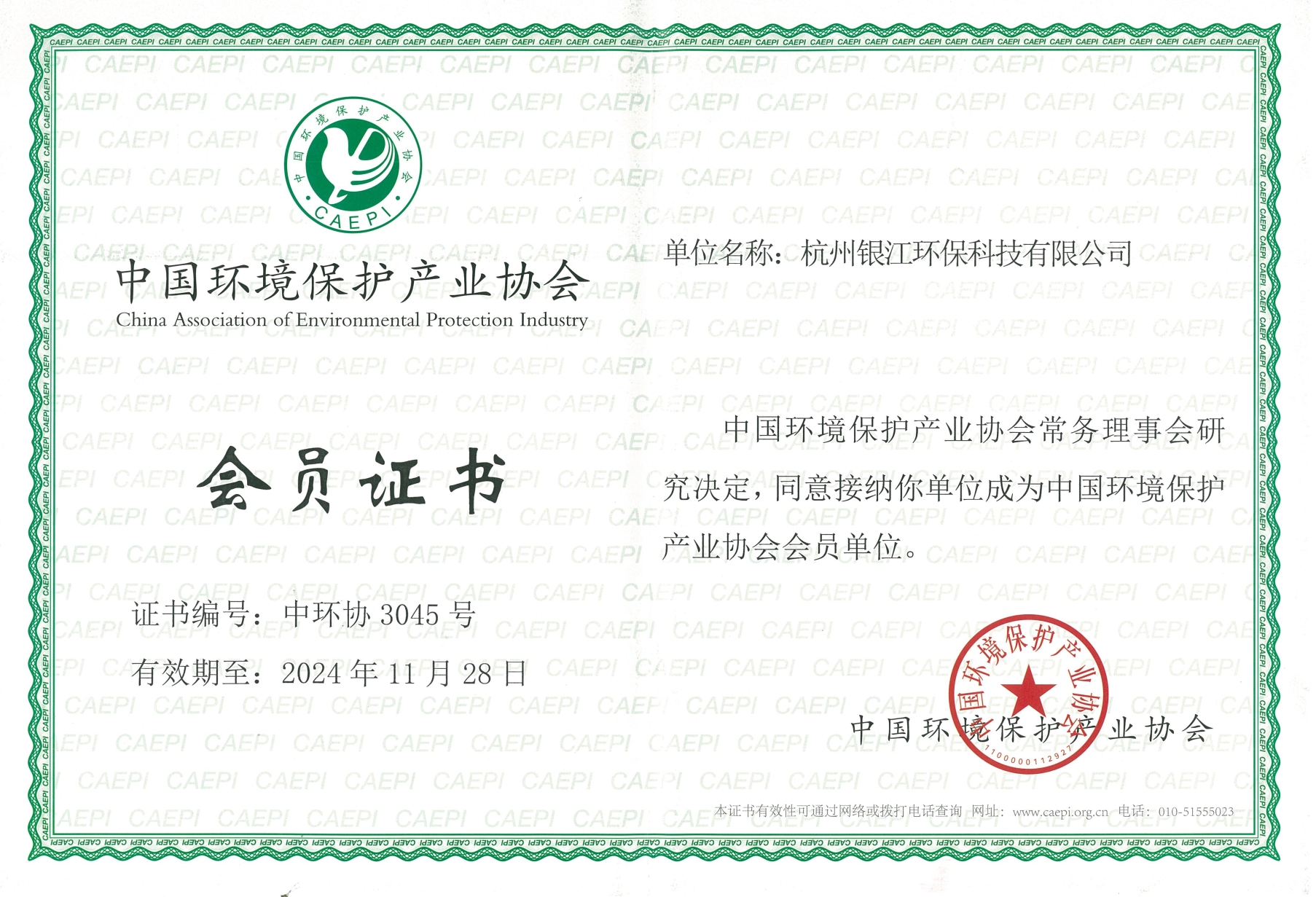中國環(huán)境保護(hù)產(chǎn)業(yè)協(xié)會會員證