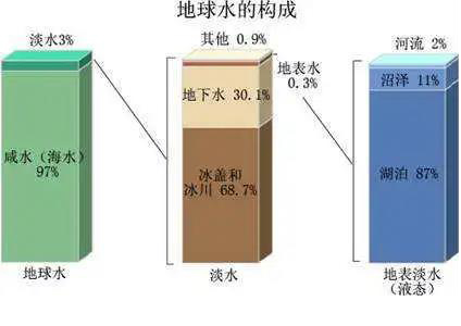 地球上陸地淡水僅占地球總儲(chǔ)水量的3%,與人類生活最密切的江河、淡水湖和淺層地下水等淡水更是僅占總淡水儲(chǔ)量的0.3%。