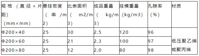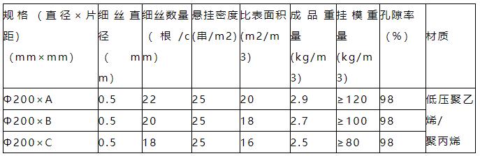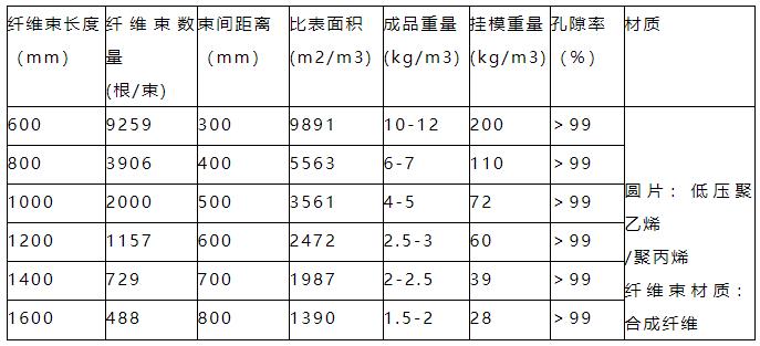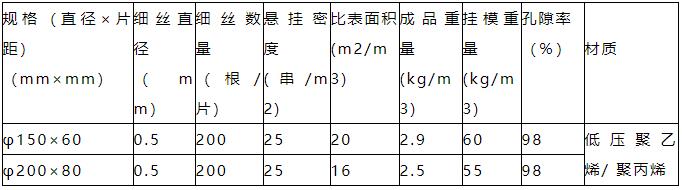 表 3瓶刷狀彈性立體填料規(guī)格參數(shù)