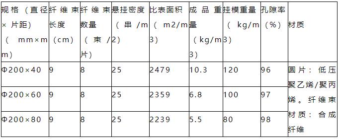 1. 軟性填料易結(jié)團(tuán),且易發(fā)生斷絲、中心繩斷裂等情況,其壽命一般為 1 年~2 年。軟性纖維填料,外形如圖 1 所示,規(guī)格如表 1 所示。