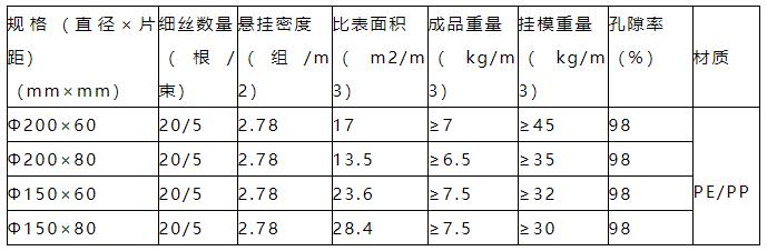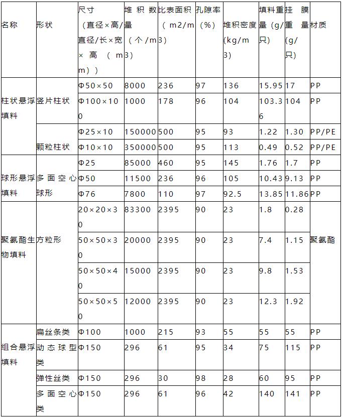 污水處理填料根據(jù)進(jìn)水水質(zhì)和處理程度確定總生物量,依據(jù)填料附著生物量確定填料品種,依據(jù)池型、流態(tài)和施工安裝條件等選擇填料類(lèi)別。填料材質(zhì)應(yīng)對(duì)微生物無(wú)毒害、易掛膜,并具有質(zhì)量輕、強(qiáng)度高、材質(zhì)抗老化、比表面積大和不宜結(jié)垢等性能。