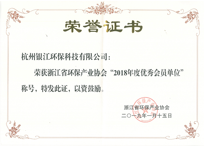 銀江環保榮獲浙江省環保產業協會“2018年度優秀會員單位“稱號發布日期:2019-01-16