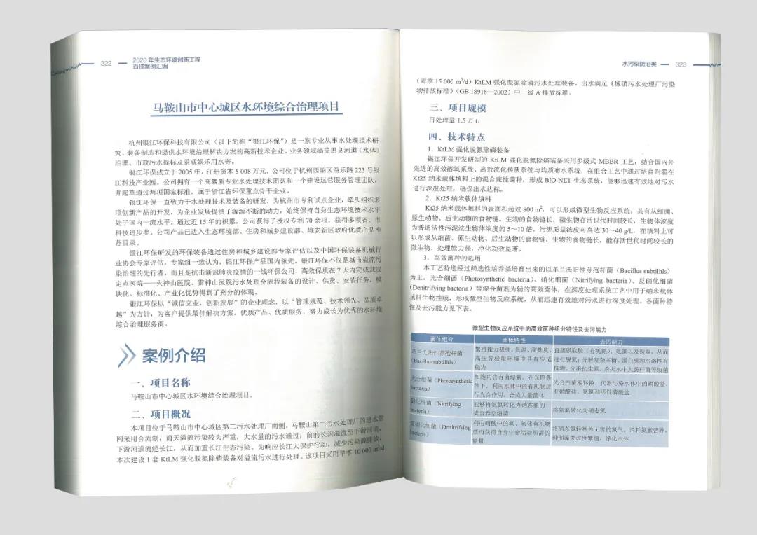 銀江環保污水分散凈化資源化系列項目——馬鞍山市中心城區水環境綜合治理項目,入選2020年生態環境創新工程百佳案例匯編。
